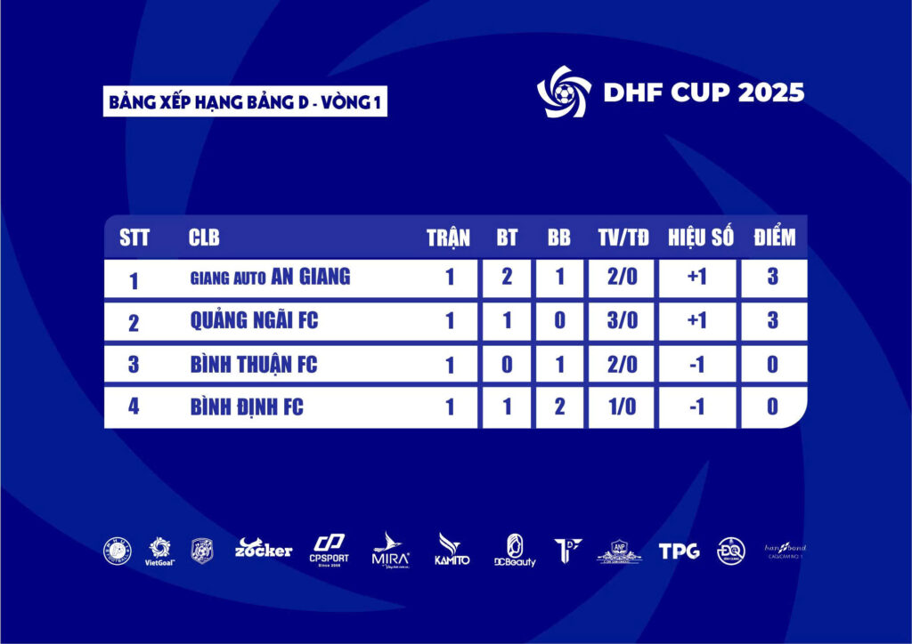 Bảng Xếp Hạng Sau Vòng 1
